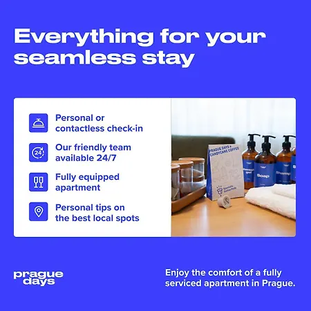 В Prague Days - Spacious City Center Studios Next To The Powder Tower є кухня, обладнана посудомийною машиною, холодильником і духовкою. Аеропорт Празький ім. Вацлава Гавела розташований за 20 км, а автовокзал Truhlarska - всього за кілька хвилин ходьби від апартаментів.